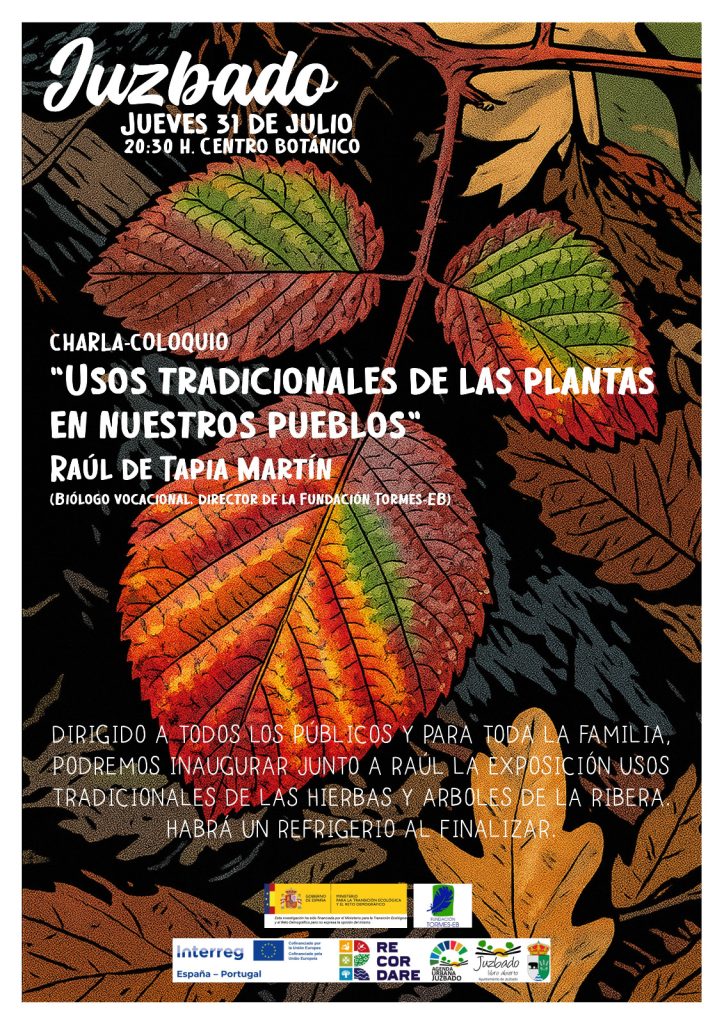 El próximo jueves 31 de julio a las 20:30 horas, el Centro Botánico de Juzbado acoge una charla-coloquio muy especial con el título “Usos tradicionales de las plantas en nuestros pueblos”, a cargo de Raúl de Tapia Martín, biólogo vocacional y director de la Fundación Tormes-EB.